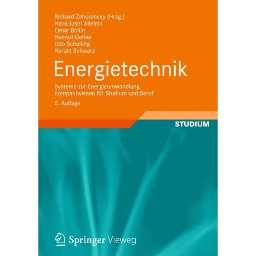 Dieses Lehrbuch vermittelt dem Leser ein grundlegendes, dennoch kurz gefasstes Verstándnis für die Zusammenhánge der Energieumwandlungsprozesse. Es umfasst die gesamte Bandbreite der Energietechnik. Die Schwerpunkte reichen von der kompletten Beschreibung der nachhaltigen, erneuerbaren Energietechniken, über Gas- und Dampfturbinen-Kraftwerke sowie Kraft-Wárme-Kálte-Kopplungsanlagen bis hin zur Energieverteilung und zum Kyoto-Protokoll. In der vorliegenden sechsten Auflage wurden im Kapitel Kerntechnik die Erfahrungen aus dem Fukushima-Unglück dokumentiert und die Kapitel Energieverteilung und Energiespeicherung neu gefasst, um den Tendenzen der politisch festgelegten deutschen Energiewende Rechnung zu tragen.Der InhaltEnergietechnische Grundlagen - Dampfkraftwerke - Kernkraftwerke - Gasturbinen - Kombinationskraftwerke - Stationáre Kolbenmotoren - Brennstoffzellen - Kraft-Wárme-Kálte-Kopplung - Wasserkraft - Solartechnik - Windenergie - Biomasse - Geothermie - Energetische Müllverwertung - Energieverteilung und -speicherung - Liberalisierung der Energiemárkte - Kyoto-ProtokollDie ZielgruppenStudierende der Energietechnik, Versorgungs- und Elektrotechnik sowie des Maschinenbaus an HochschulenDer HerausgeberHerausgeber und Hauptautor Prof. Dr.-Ing. Richard A. Zahoransky ist nach seinen beruflichen Stationen an der Universitát Karlsruhe (heute KIT), Yale University sowie Industrietátigkeiten in In- und Ausland wieder Professor an der Hochschule Offenburg.Die AutorenUniv.-Prof. Dr. rer. nat. Hans-Josef Allelein hat den Lehrstuhl für Reaktorsicherheit und -technik an der RWTH Aachen inne; Prof. Dipl.-Ing. Elmar Bollin lehrt an der HS Offenburg an der Fakultát Maschinenbau und Verfahrenstechnik; Dipl.-Ing. Helmut Oehler ist Gescháftsführer der Gasversorgung Süddeutschland GmbH; Prof. Dr.-Ing. Udo Schelling lehrt an der Fakultát Maschinenbau der HS Konstanz; Prof. Dr.-Ing. Harald Schwarz hat den Lehrstuhl für Energieverteilung und Hochspannungstechnik an der BTU Cottbus inne.